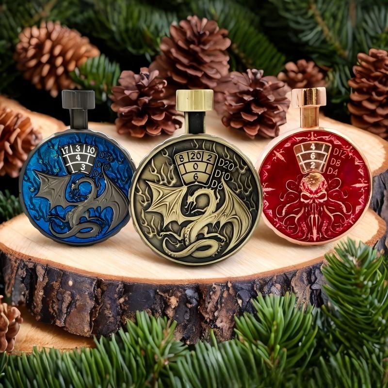 Crafted from durable zinc alloy, this spinner dice offers a satisfying weight, smooth rotation, and a premium fantasy aesthetic perfect for any tabletop RPG session.